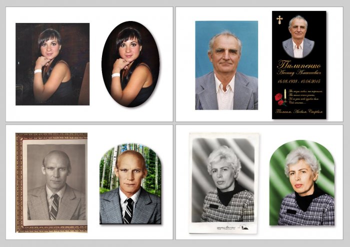 Каждый портрет уникален, поэтому в ретуши фотографий на памятник нет единого шаблона для обработки всех фото.